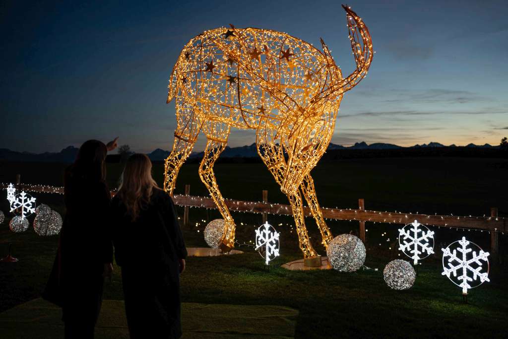 Täglich von 17:00 bis 19:45 Uhr verwandelt sich der weitläufige Hotelgarten Hotels „Das Weitblick Allgäu“ in ein faszinierendes Lichtermeer. Zahlreiche Strahler, rund unendliche Meter Lichterketten sowie kunstvoll platzierte Lichtelemente, wie ein gigantischer Hirsch, sorgen für eine magische Kulisse, die bei klarer Sicht sogar mit dem funkelnden Sternenhimmel konkurriert.